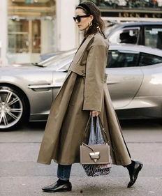 4. 风衣搭配包包,可以选择与风衣颜色相呼应的款式。